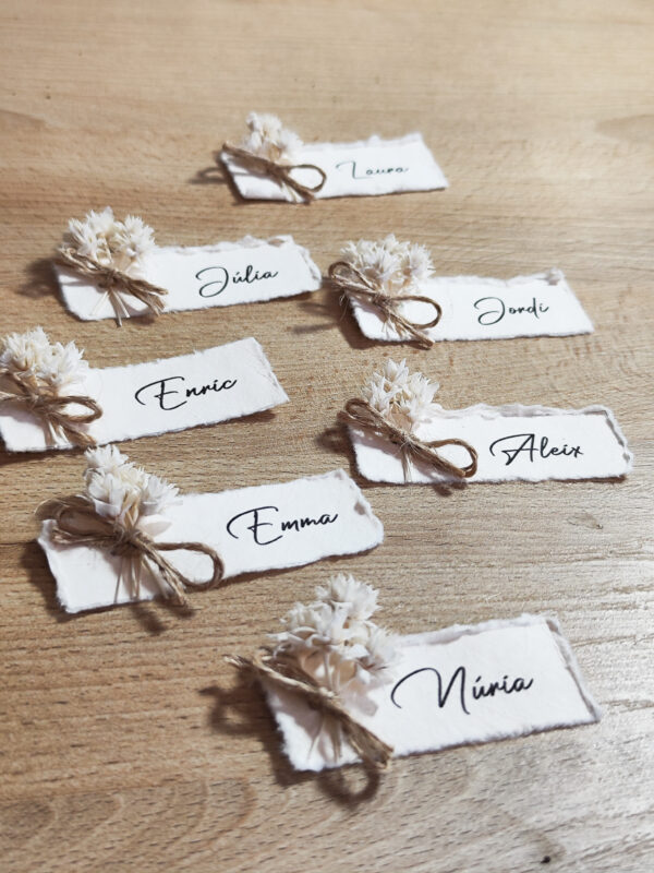 Marcasitios artesanal hecho con papel y cinta de algodón, Estos marcasitios son una cucada, ideales para cualquier evento o celebración. Se pueden escoger el color y/o tipo de cuerda o cinta que quieras poner.