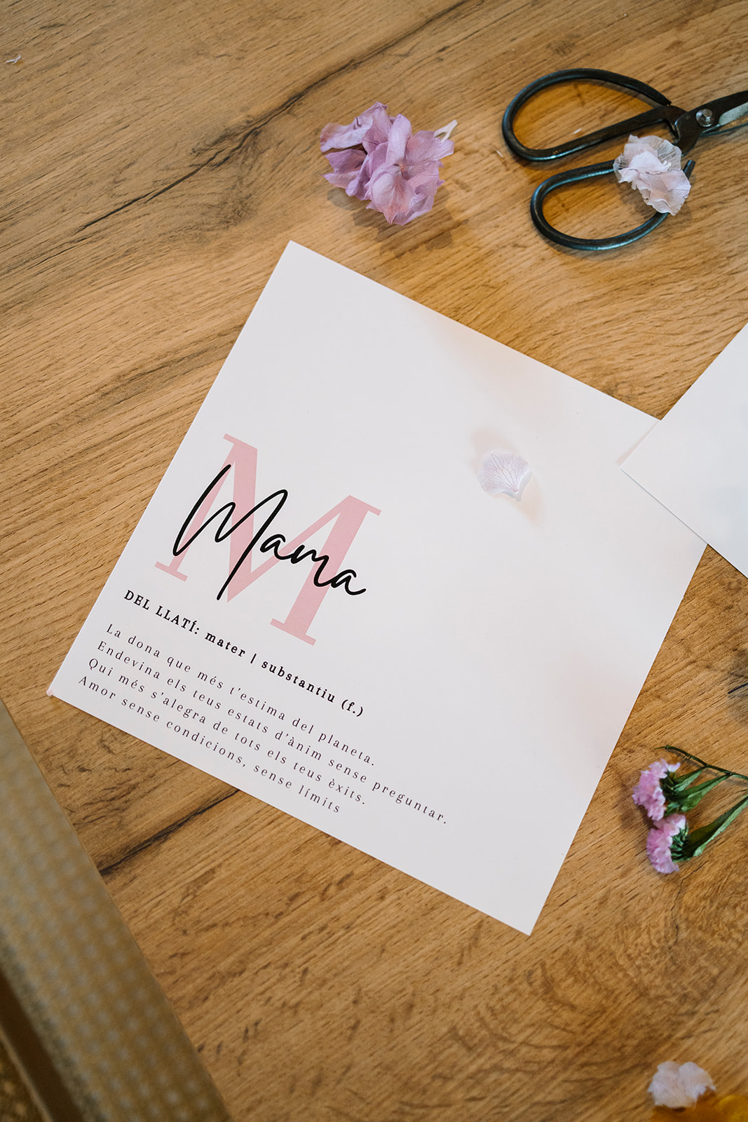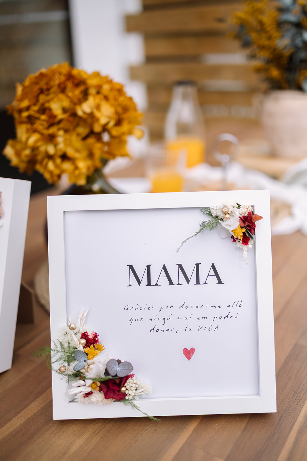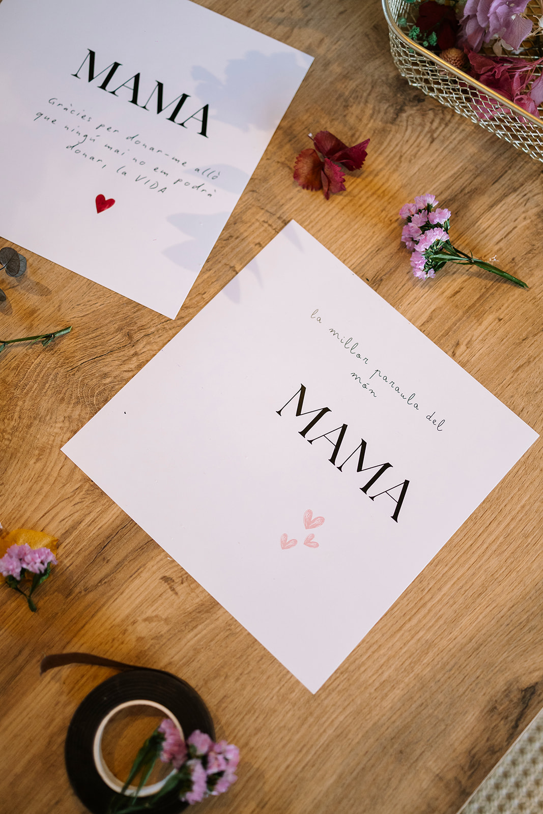Durant el matí creareu juntes una làmina floral amb flors preservades, escollint entre diferents dissenys preparats especialment per a l’ocasió. Cada família dissenyarà la seva pròpia composició floral, col·locant les flors amb cura sobre la làmina fins a crear una peça única.