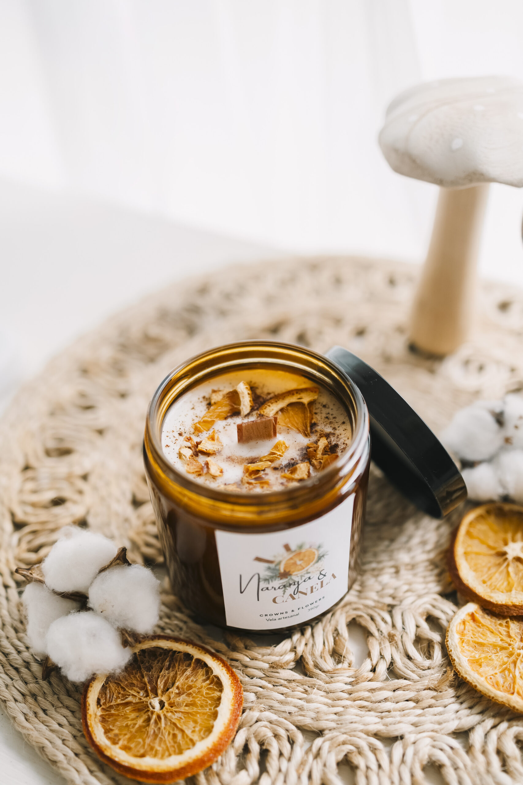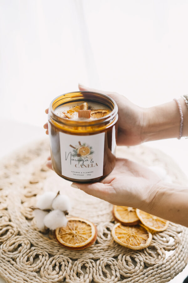 En este caso, son velas de soja de canela y naranja, un intenso aroma cítrico y especiado. La frescura de la naranja y las notas dulces y sensuales de la canela se combinan a la perfección, ¡una mezcla perfecta para los sentidos!